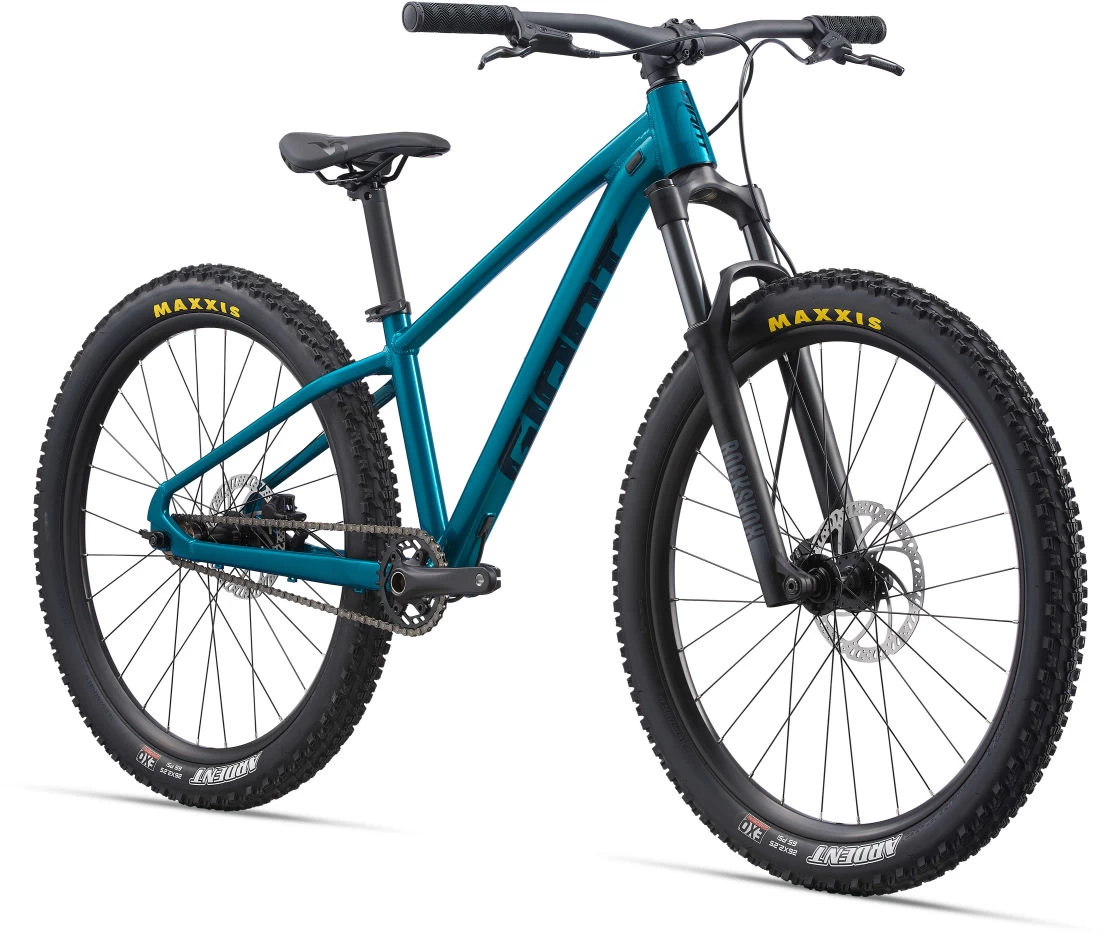 Powerful disc brakes and 120mm suspension fork with remote lockout put maximum control in the rider’s hands. Grippy, high-volume 26-inch tires for streets, trail or park riding.