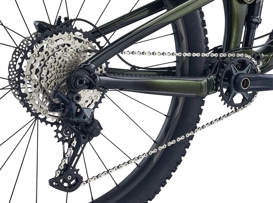 | Frame: Fork: Silencer: | ALUXX SL Aluminum, Maestro suspension, travel 120 mm, fixed axle 12×148 mm Fox 34 Performance, 130mm, GRIP damper, Boost 15×110 Kabolt, 44mm offset, custom tuned for Giant Fox Float DPS Performance, 185/50, custom tuned for Giant |