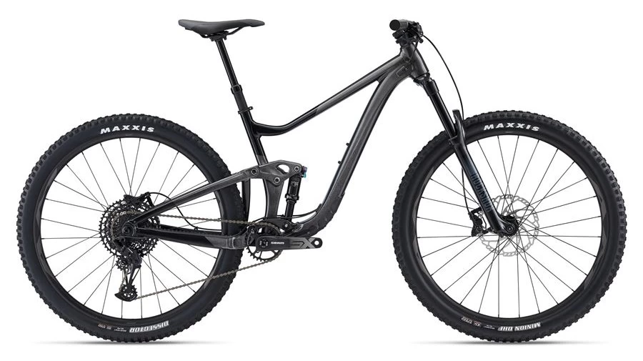 | Frame: Fork: Silencer: | ALUXX SL Aluminum, Maestro suspension, travel 135 mm, fixed axle 12×148 mm, flip chip FOX 36 Performance Elite, FIT4, 150mm travel, Boost solid axle 15×110 mm (Kabolt), 44 mm offset FOX Float DPX2 Performance, size 185/55, tuned for Giant |