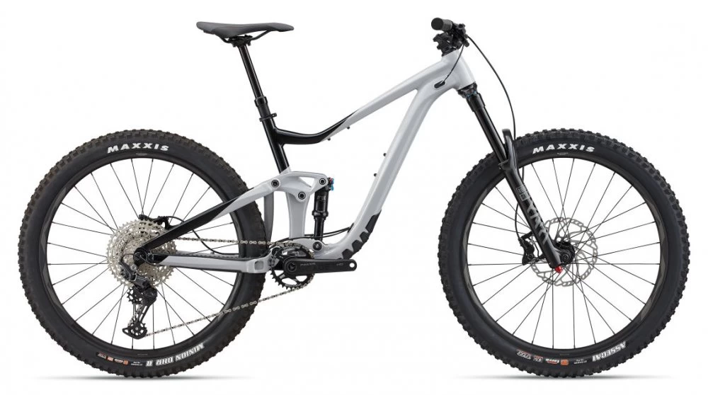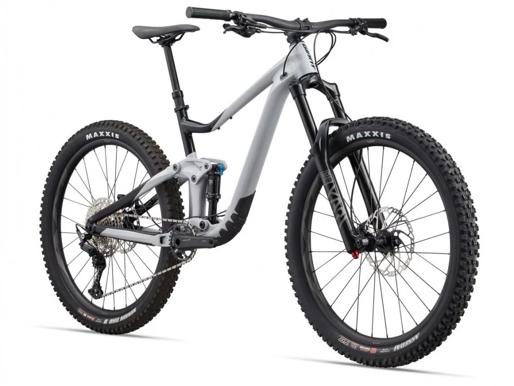 | Frame: Fork: Silencer: | ALUXX SL-Grade Aluminum front and rear triangles, 145mm Maestro suspension, flip chip, 12x148mmthru-axle RockShox Yari RC, Motion Control, DebonAir, 37mm offset, 160mm, 15×110 Stealth, custom tuned for Giant Fox Float DPS Performance, 185/55, custom tuned for Giant |