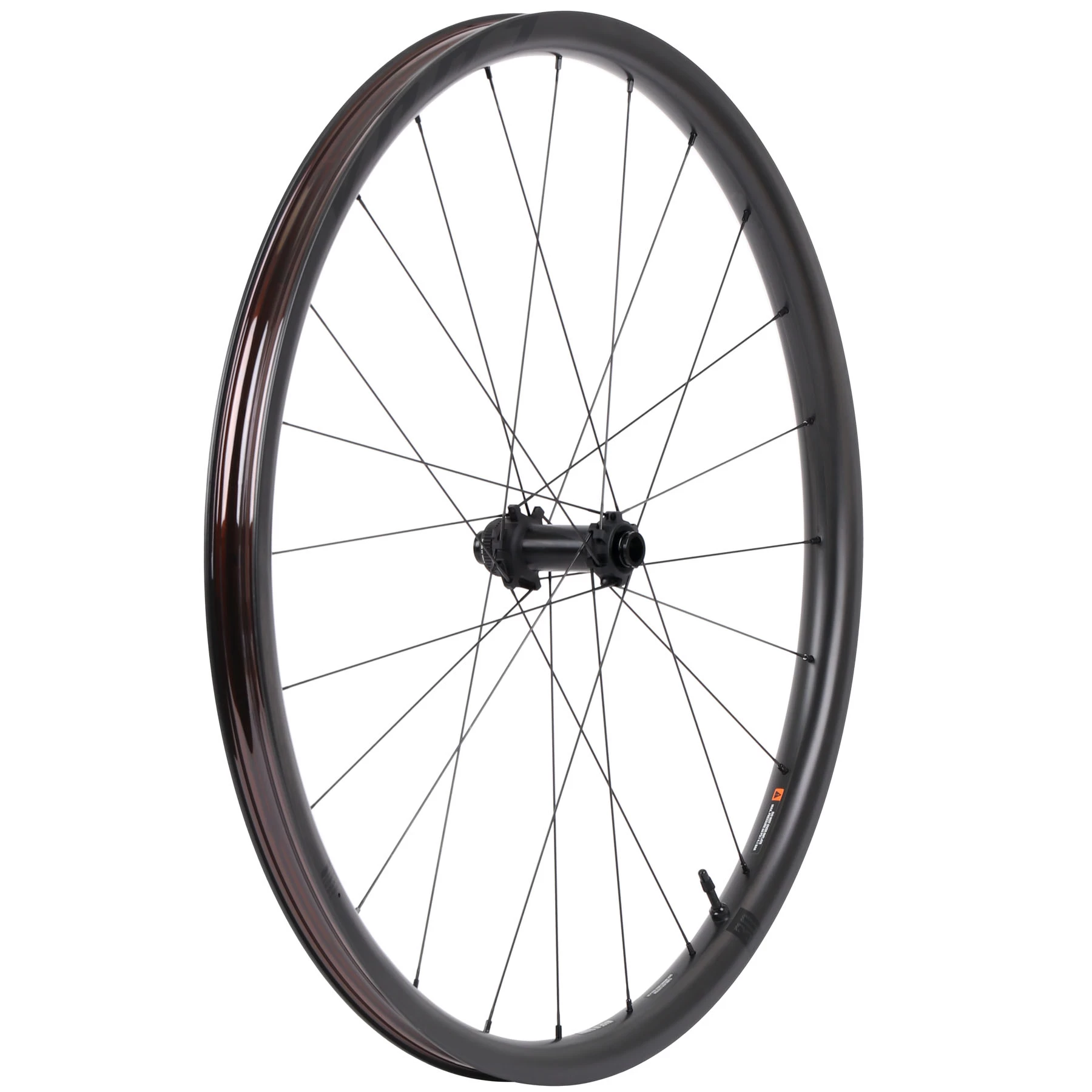 Modern, lightweight carbon front wheel for XC and Marathon use with extra wide rim.